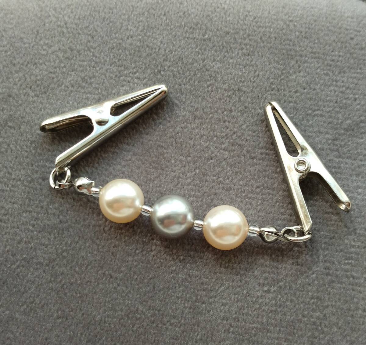 - ミニクリップ スワロフスキーパールのショートストールクリップ カーディガン留め