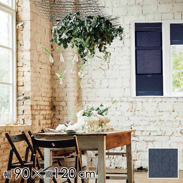 - シェードカーテン おしゃれ デニム ローマンシェード 窓 目隠し カジュアル 西海岸 階段 廊下 玄関 取り付け 簡単 紐なし 安心 安全 部品