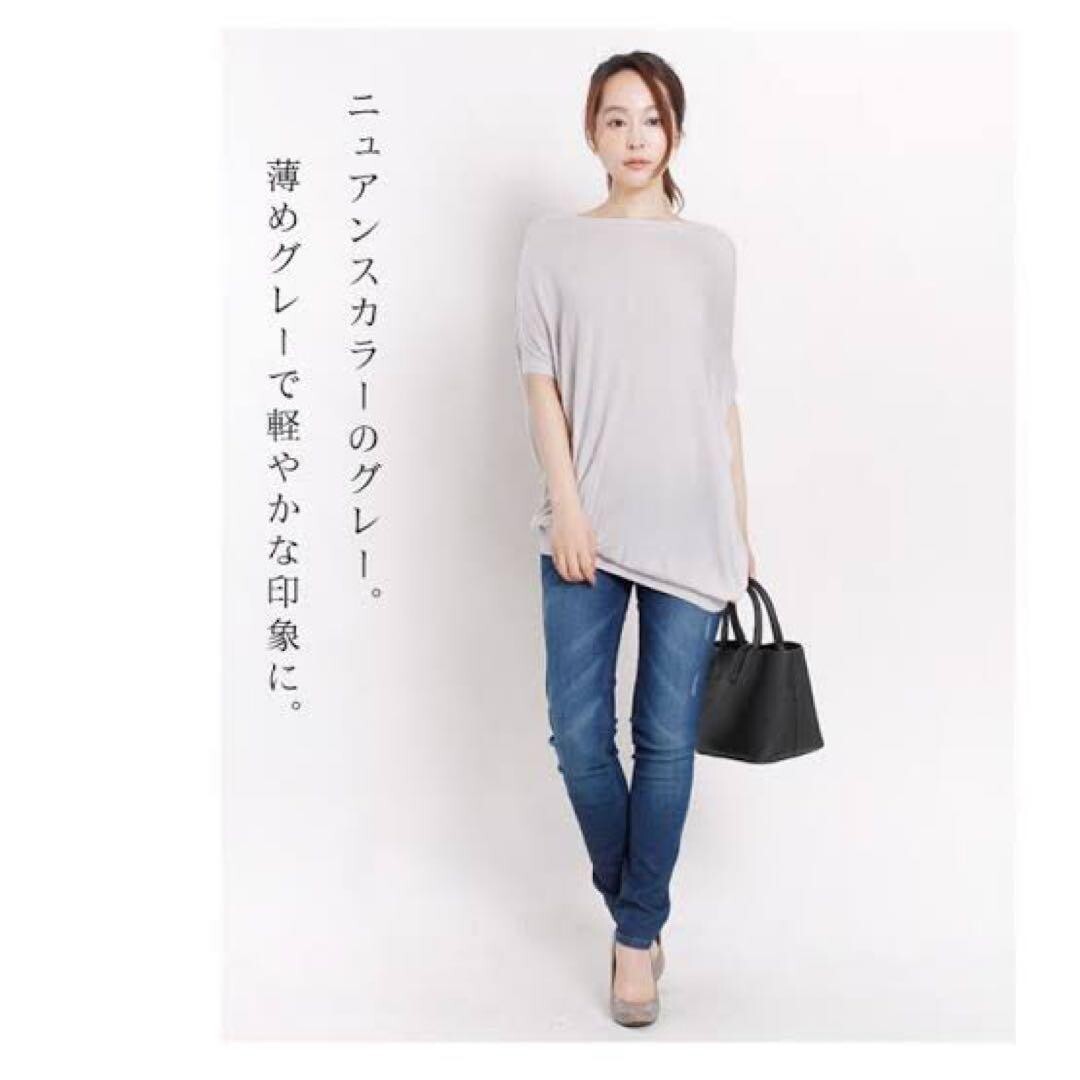 > PLST プラステ 新品タグ付きシルク半袖オーバーサイズカジュアル 薄手 透け感有 リブニット ドロップショルダーニットグレー2 C828