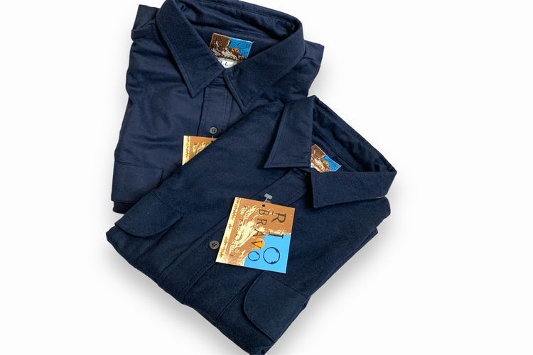 - デッドストック90s~ビンテージRIOBRAVOリオブラボオールコットンフランネルシャモアクロスシャツL無地ネイビーアメカジストリートnr24556