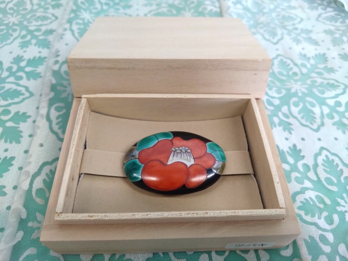 - ●九谷焼 伝統工芸士【幸】銘あり 井出幸子 椿 ツバキ 陶器 帯留め 帯留 帯飾り 和装小物 元箱 桐箱 付き 未使用品 ③