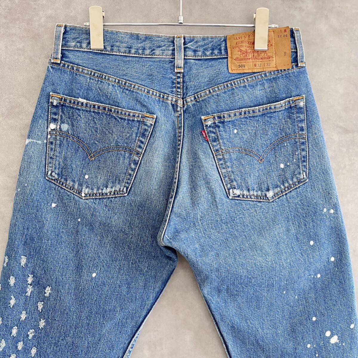 - 00s USA製 Levi's リーバイス 501 デニムハーフパンツ ペイント&ダメージ加工 W32 ヴィンテージ