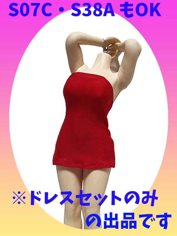 - SALL(H565)1/6アクションフィギュア女性衣装 ドレス 赤ワンピース S07C ふくよかタイプ S38A ファイセン tbLeague ハンドメイド