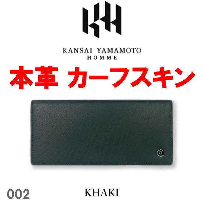 - カーキ 002 ヤマモト カンサイ KANSAI YAMAMOTO 本革 カーフスキン スリム 長財布