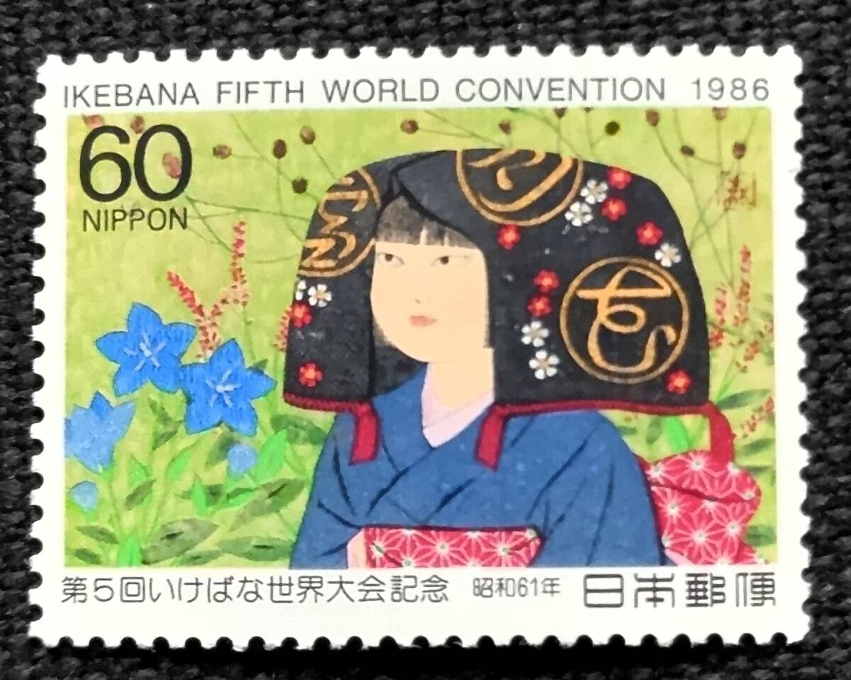 - [23021540]【第5回いけばな世界大会記念】単片「秋の花と洛北おとめ」60円 1986年発行 美品*