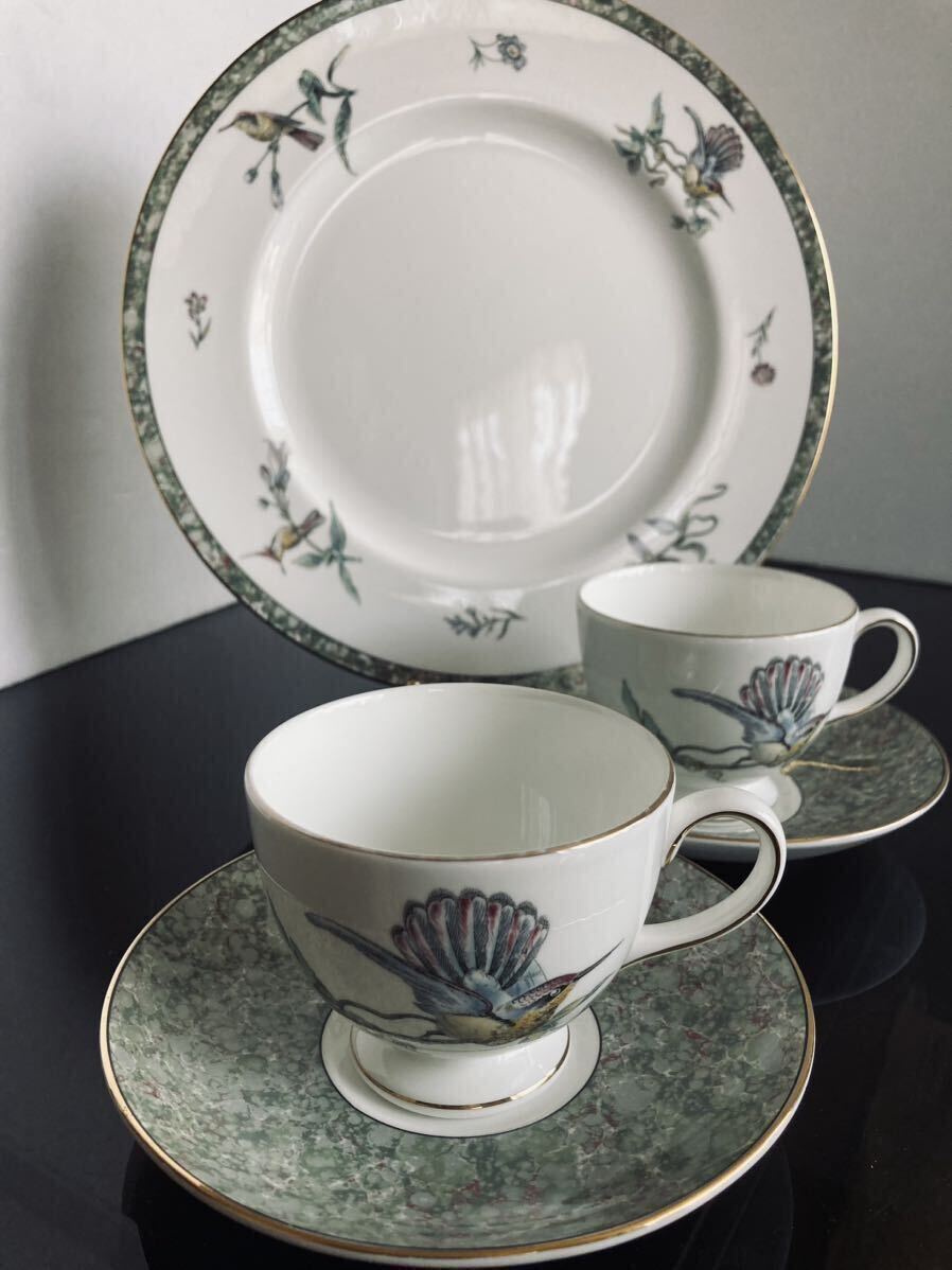 - WEDGWOOD ウェッジウッド ハミングバード カップ&ソーサー 2客セット 27cm プレート 大皿1枚 旧刻印 黒壺