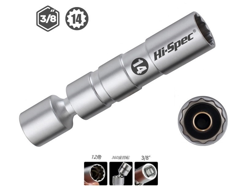 - Hi-Spec磁石式14mm軽量薄型12角☆ユニバーサルジョイント スパークプラグソケット