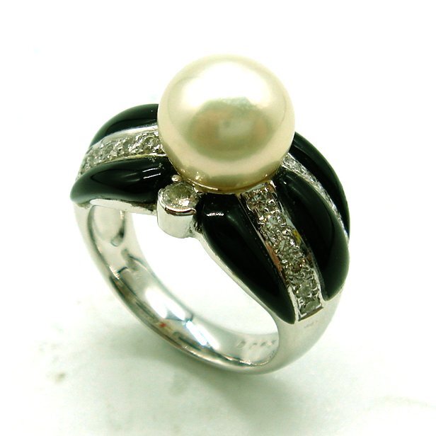 - R937:Pt パール オニキス ダイヤ リング(#12強)