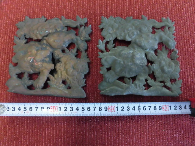 - ★獅子飾/時代/寺院飾り金具/仏閣建具/だんじり飾/銅製/装飾/金具/中古長期保管品①★