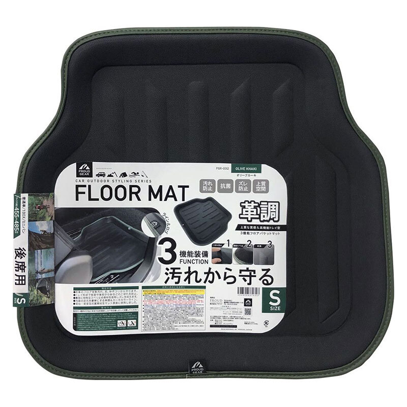 > フロアマット 革調 オリーブカーキ 後席用 レザー調バケットマット Sサイズ 455×485mm 軽・普通車/1BOX/ミニバン プラウドギア PGR-032