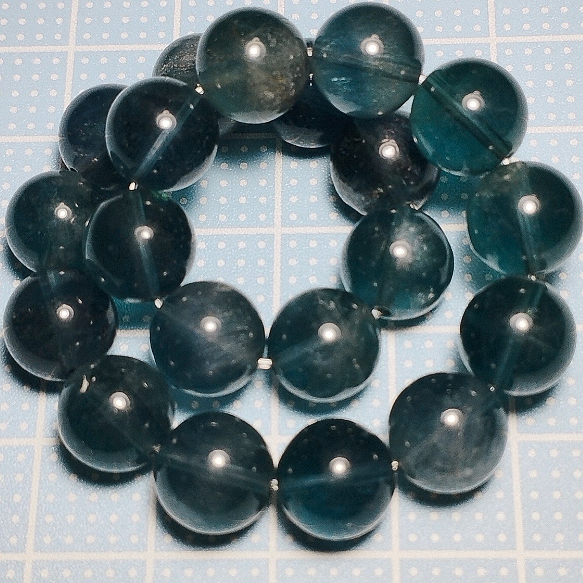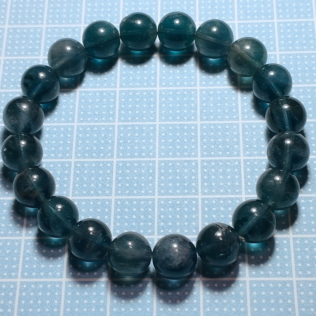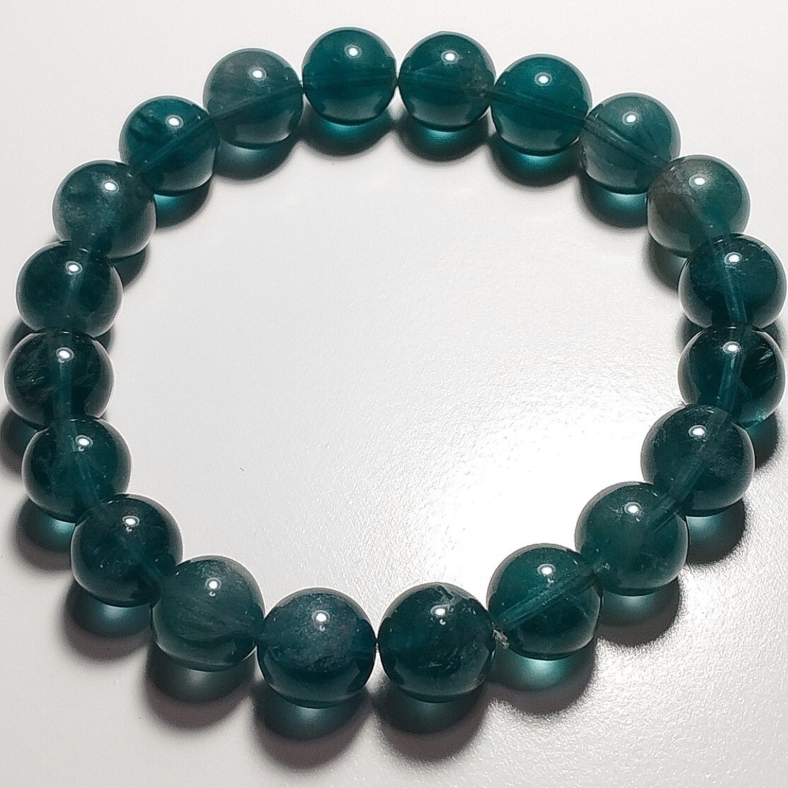 > ブルーグリーンフローライト エンジェルフェザー ブレスレット 9.5mm 16cm ブルーフローライト