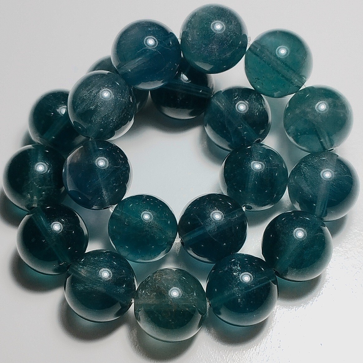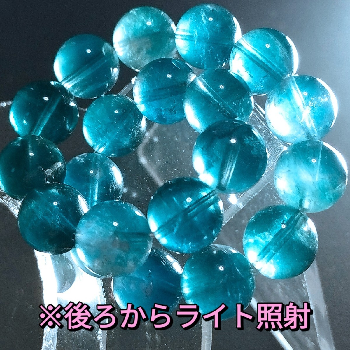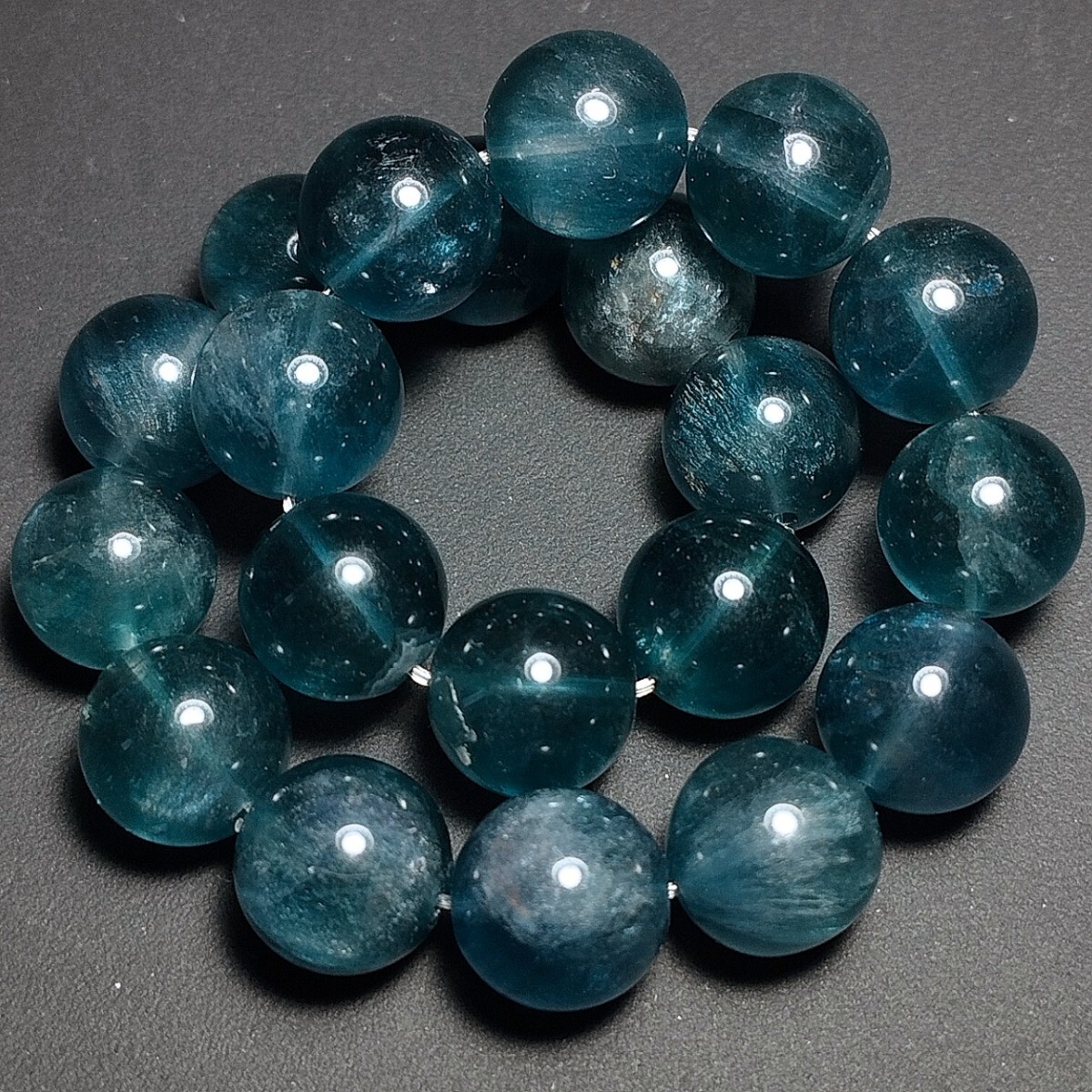 > ブルーグリーンフローライト エンジェルフェザー ブレスレット 9.5mm 16cm ブルーフローライト