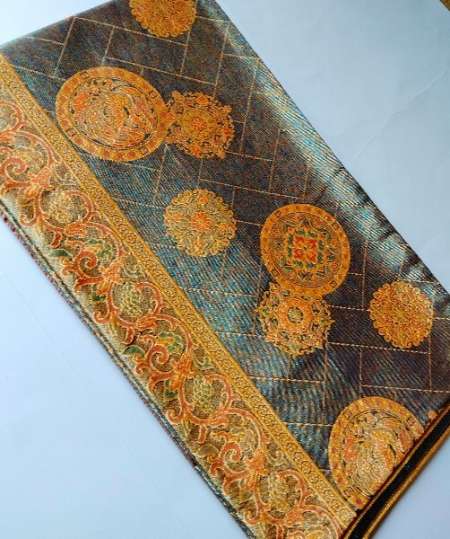 - 高級正絹袋帯 グリーン系 光沢 仕立上がり