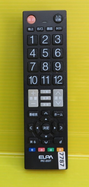 - 即発送!TV-7787■ELPA エルパ テレビ用リモコン IRC-203T ■ 動作品 保証付