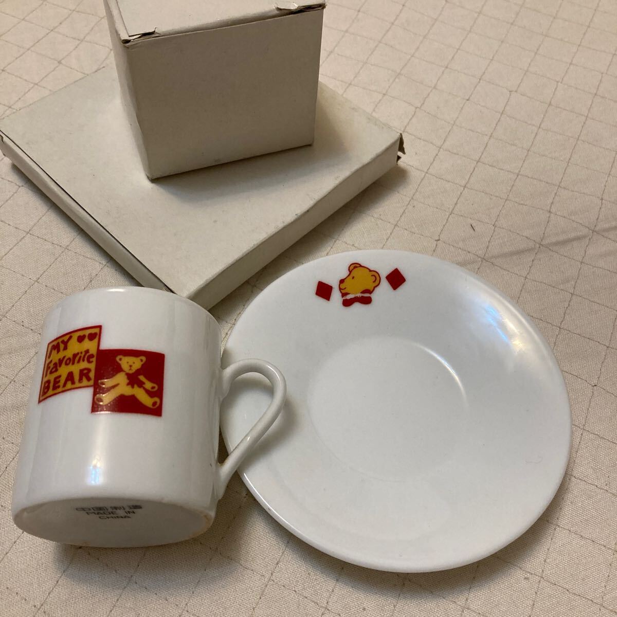 - 小さな カップ ソーサー クマ 食器 未使用 昭和レトロ コーヒー カップ プレート マグカップ デミタスカップ? テディベア