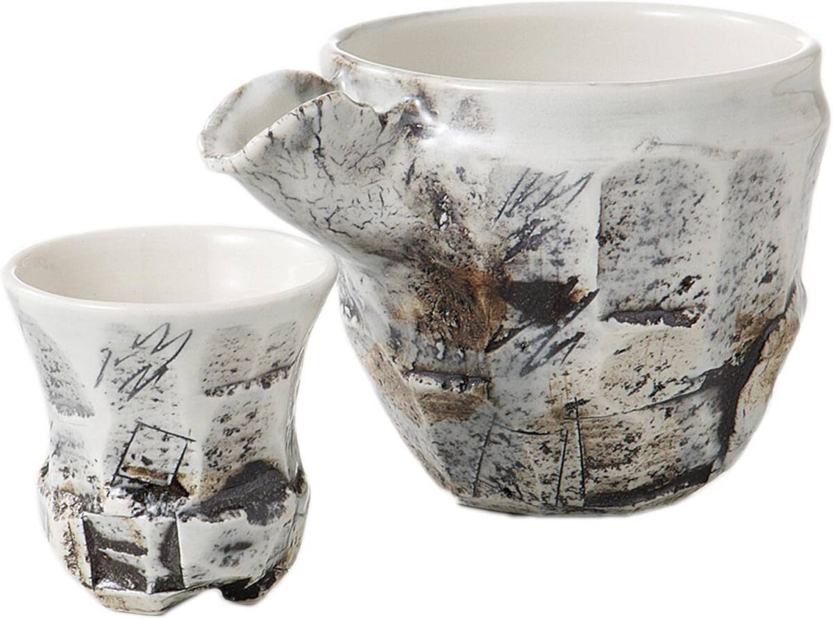 - 美濃焼! 鶴琳窯 ☆青磁線刻・冷酒セット☆ V4021-4 ギフト ぐい呑 サカズキ 徳利 酒注ぎ 片口