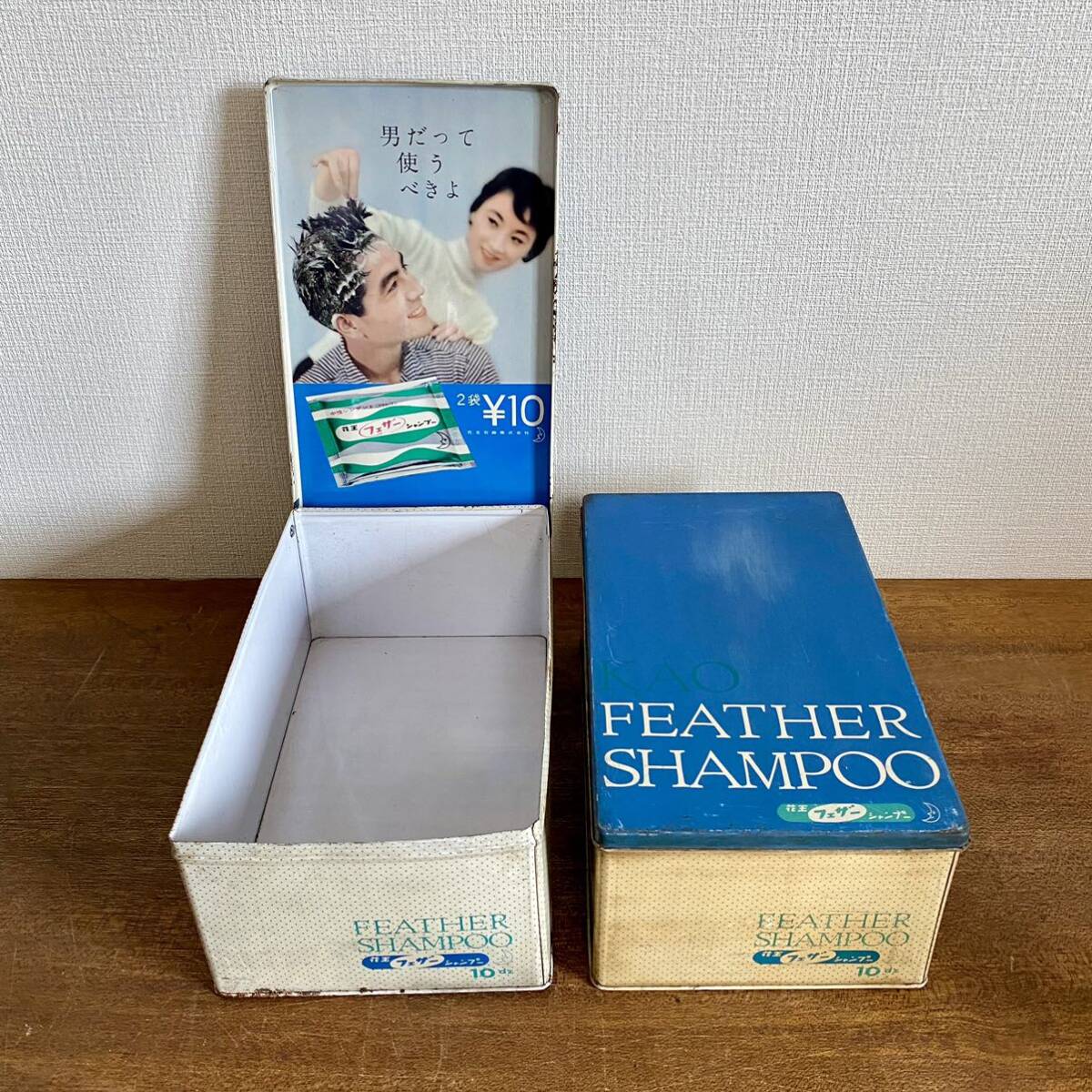 - 昭和レトロ 花王 フェザーシャンプー 空き缶 2点セット / feather shampoo ブリキ缶 ヴィンテージ