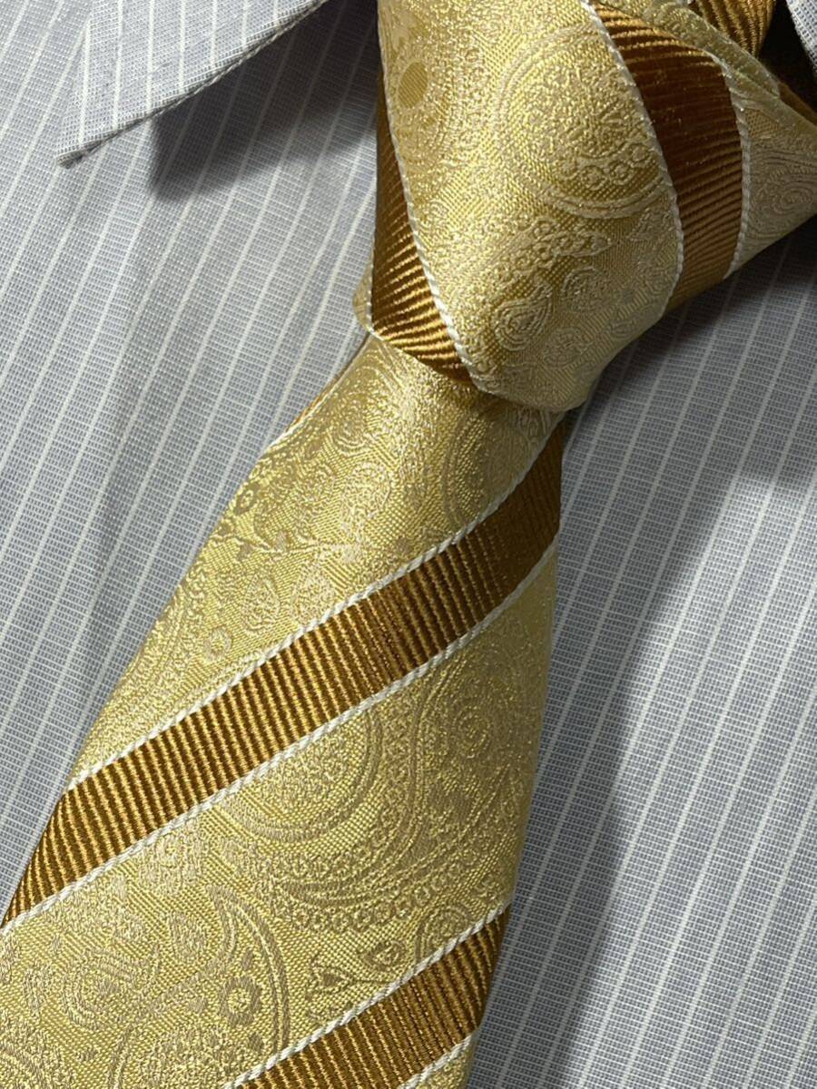 - ほぼ未使用 ″SIMON CARTER″ サイモンカーター 細身 ペイズリーストライプ ブランドネクタイ 407060