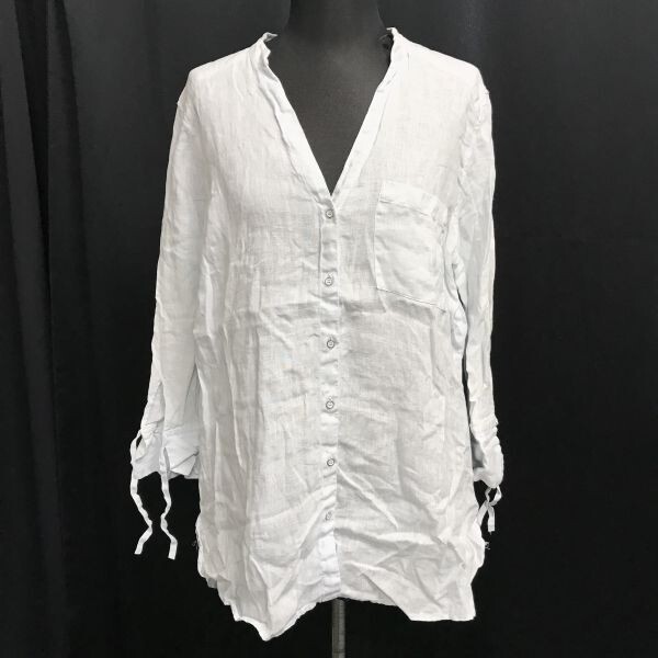 - スペイン製★ZARA BASIC COLLECTION/ザラ★リネン/ノーカラーシャツ【レディースM/blue/水色】Tops/Shirts◆SBH888