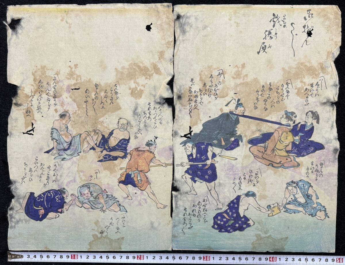 - 江戸期/真作 「ごぞんじ戯勝負」本物浮世絵木版画 腕相撲 戊辰戦争 戯画 風刺絵 錦絵 大判 二枚続き