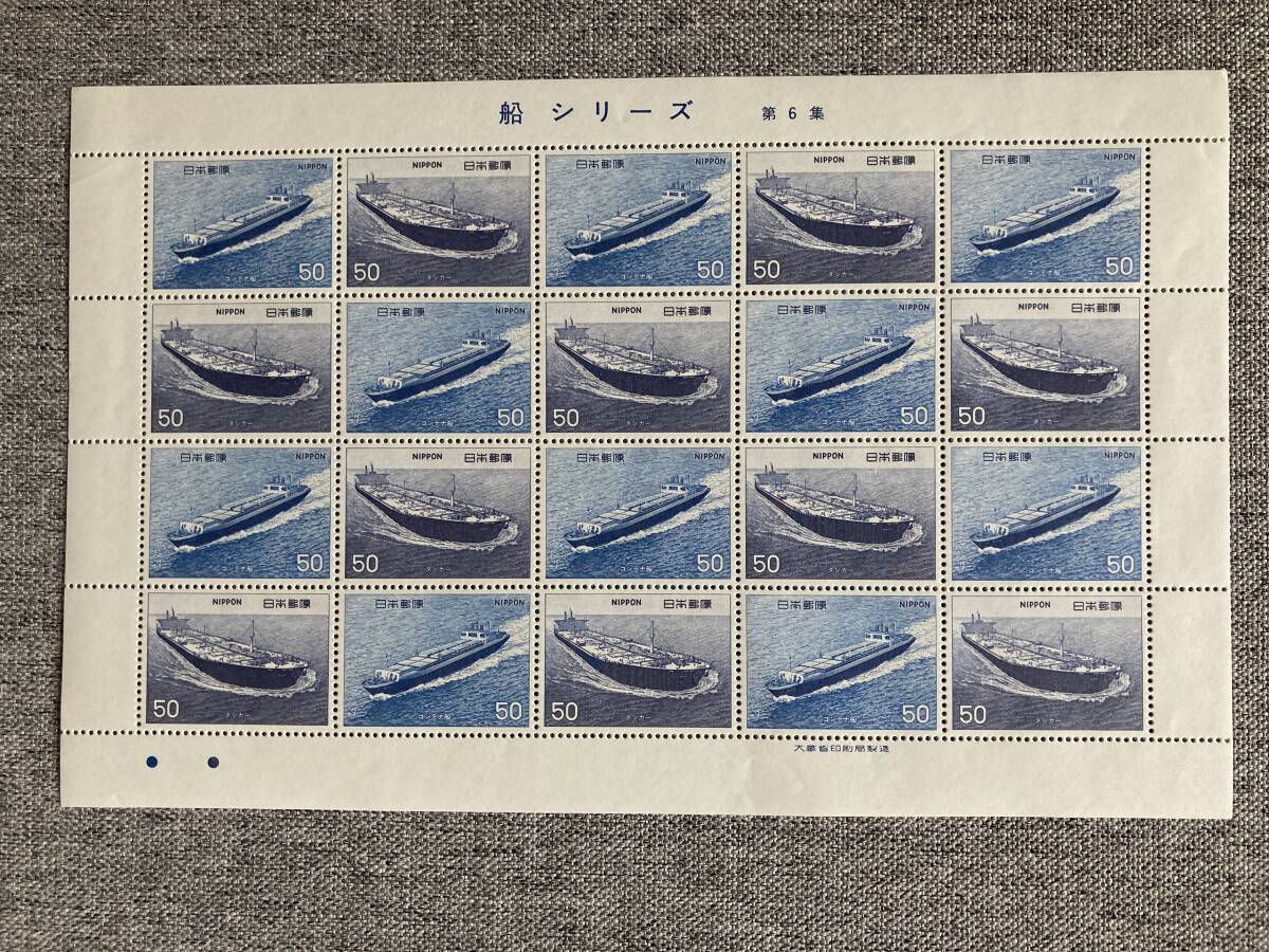 > ★未使用 船 シリーズ 第6集 コンテナ船 (鎌倉丸) タンカー (日精丸) 1976年 昭和51年 切手シート 50円 20枚 2種連刷 日本郵便