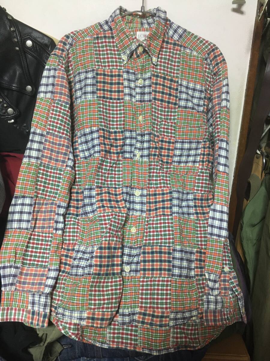 > 2308オールドOLD90'sジェイクルーJ.CREWクレイジーCRAZYパッチワークB/Dボタンダウン マドラスチェックシャツXS旧タグ巨人USED古着パネル