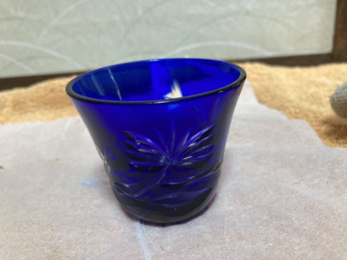 - アンティーク ?骨董品?ガラス製?切子グラス ?グラス?ロックグラス ?洋食器?ブルー?汚れありです。