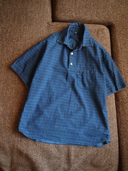 - ALOHA.C.No.35★印象的なスティッチ刺繍使い◎藍染めの素朴な佇まいも可愛いアロハ シャツ★45rpm 45R メンズ 即決 Tシャツ インディゴ染め