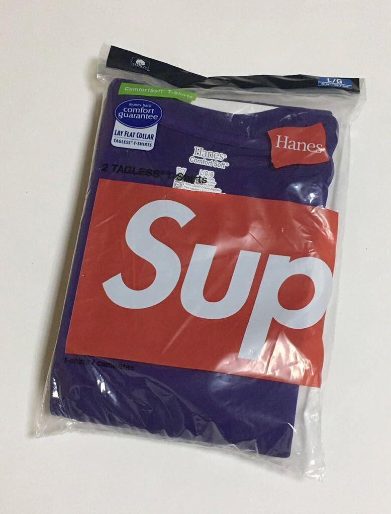 > Supreme × Hanes Tagless Tees 2 Pack 新品 L Purple シュプリーム ヘインズ タグレス Tシャツ パープル 紫 2枚組 ロゴ 半袖 カットソー