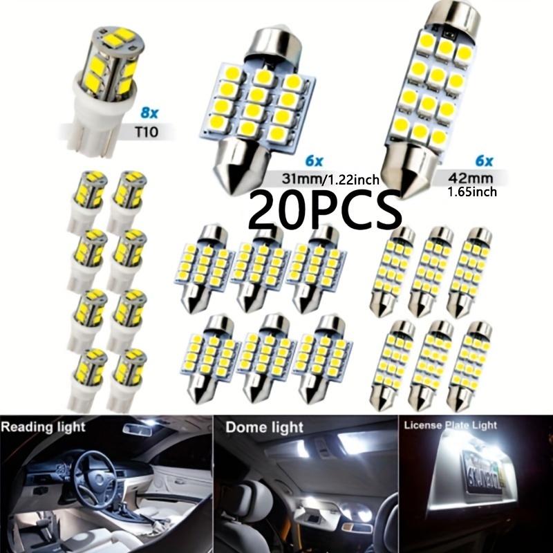 - 20個セット 車用 LEDライト ホワイト 白 T10 31mm 42mm バルブウエッジタイプ 電球 車内ランプ SMD 置換ナンバー灯 ナンバープレート t1091
