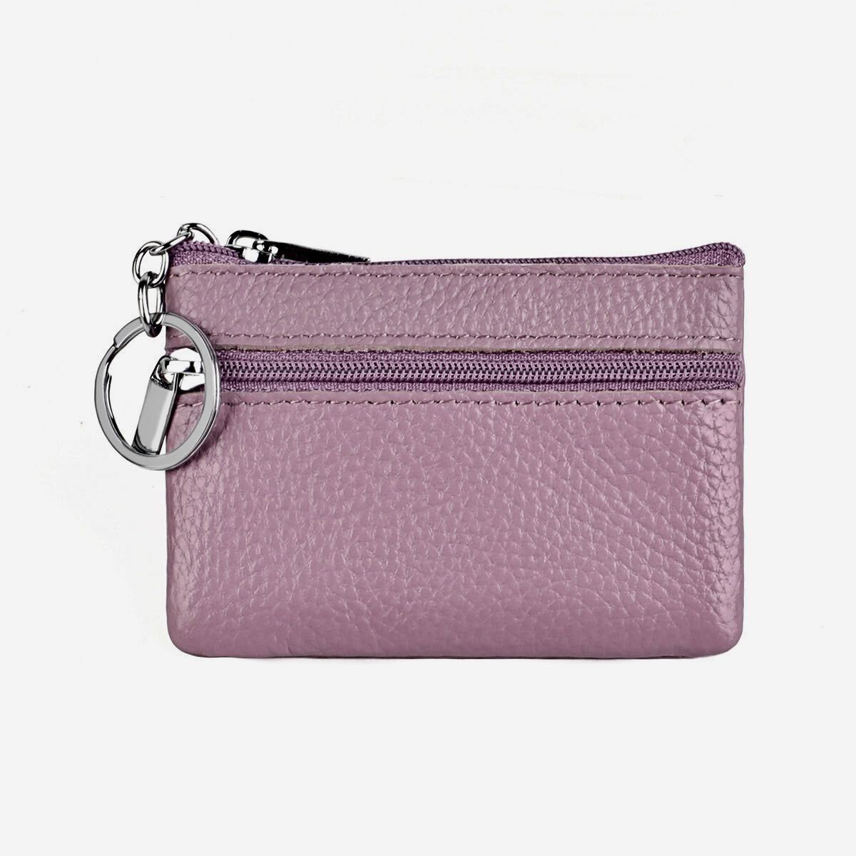 - 本牛革 ミニ財布 小銭入れ 財布 パープル コインケース キーチェーン カードケース 男女兼用 フォーマル カジュアル プレゼント
