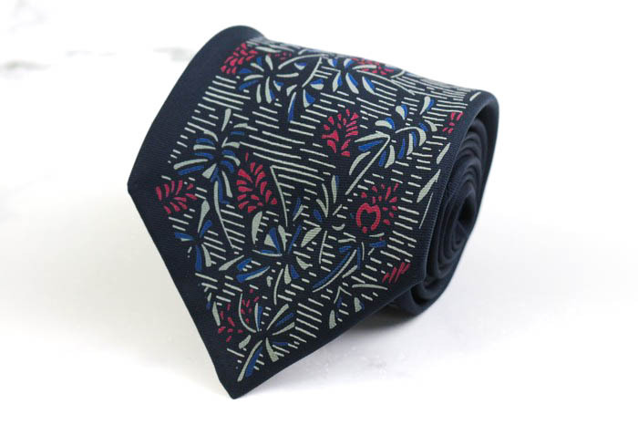 - ミラショーン ブランド ネクタイ ロゴ 総柄 花柄 リーフ柄 シルク イタリア製 PO メンズ ネイビー mila schon