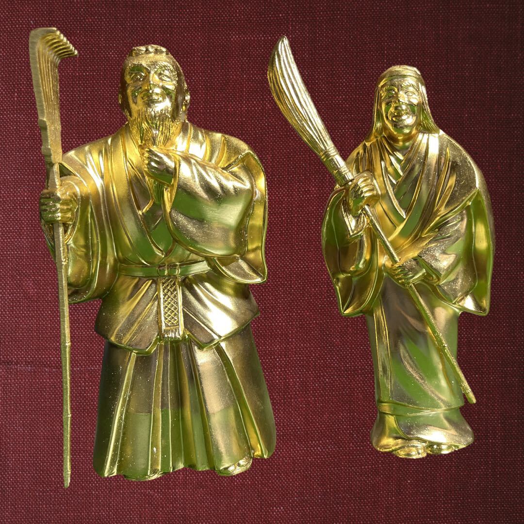 - (未使用)高砂 尉・姥 高岡銅器 青銅製純金鍍仕上げ 置物 工芸品 縁起物。