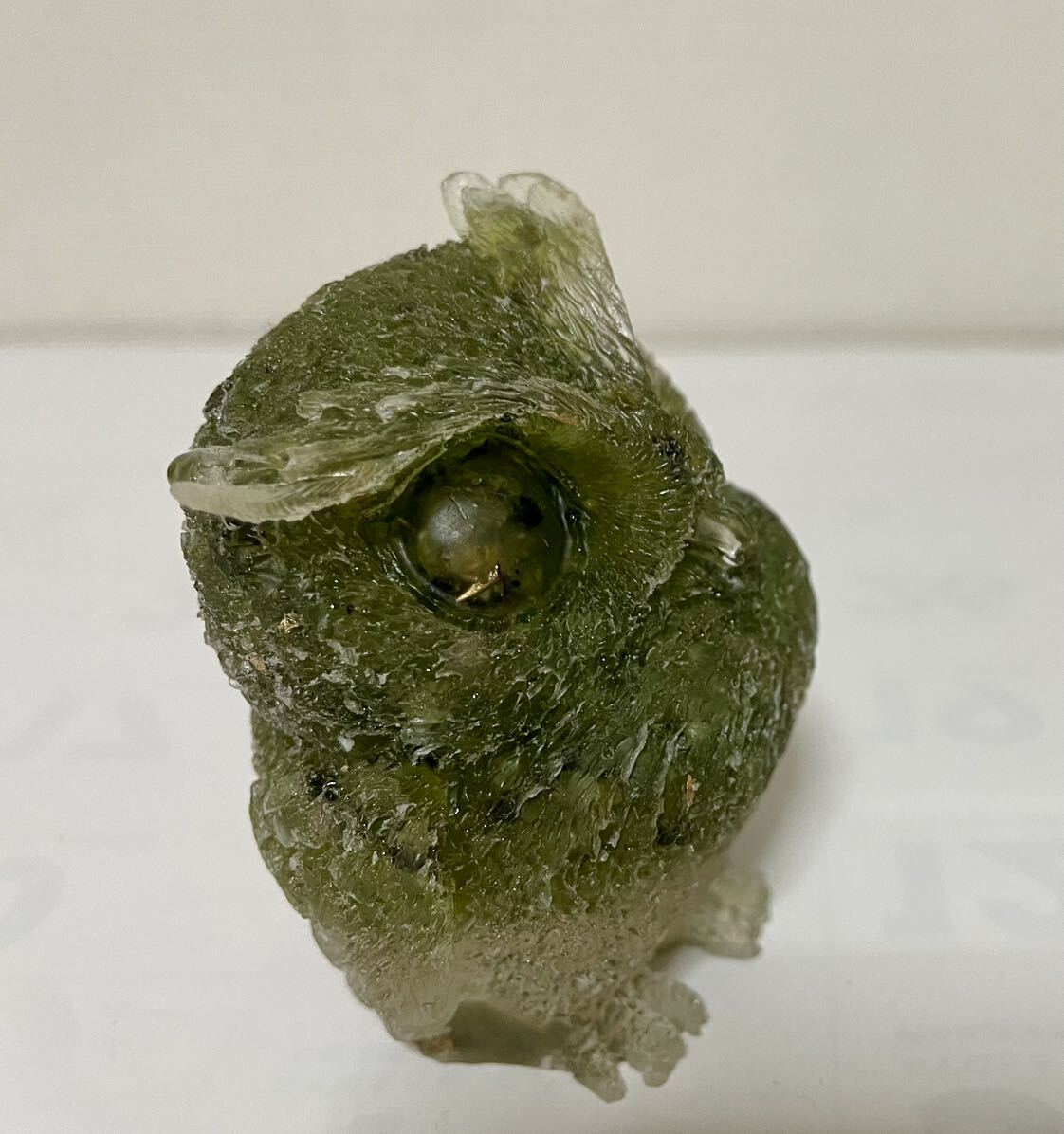 - カンラン石のフクロウ オルゴナイト ペリドット 風水晶 天然石置物 縁起物 幸運ラッキー パワーストーン インテリア グリーン 小物 お守