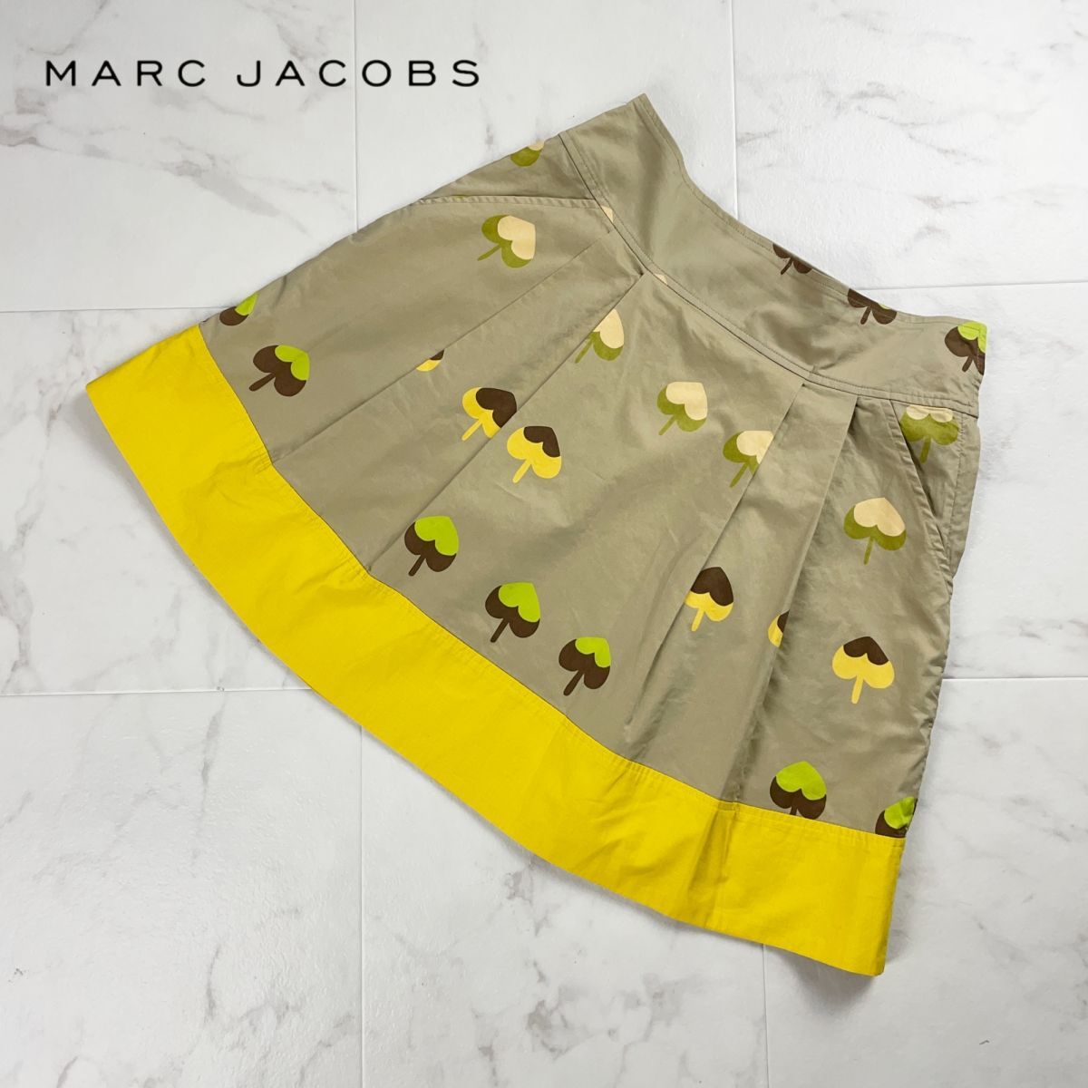 - 美品 Marc by Marc Jacobs マークバイマークジェイコブス タックフレアスカート 総柄 サイドジップ 膝丈 裏地あり ベージュ サイズ2*RC1280