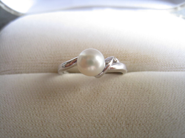 - [SAMU]綺麗!!銀座マキ 照り抜群 あこや真珠7.0mm k14WG指輪 リング#11号★美品!