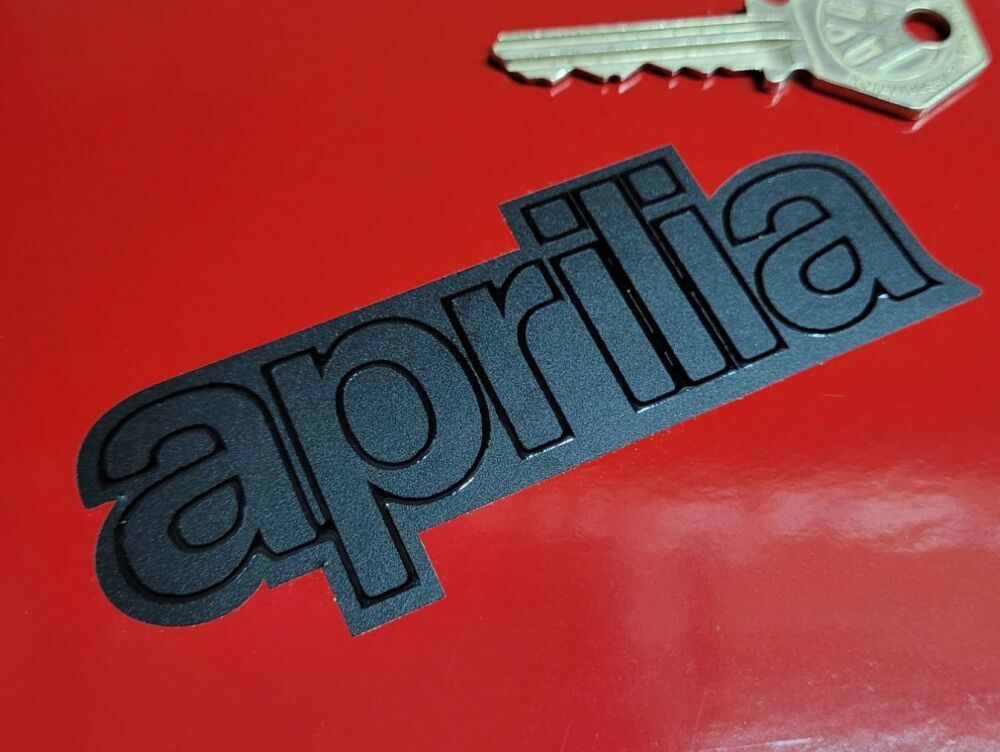 - 送料無料 Aprilia アプリリア ステッカー エンボス マットブラック 75mm 2枚セット 100mm × 40mm