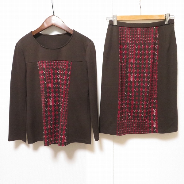 - #anc レリアン Leilian セットアップ ツーピース 9 茶 赤 千鳥格子 レディース [902001]