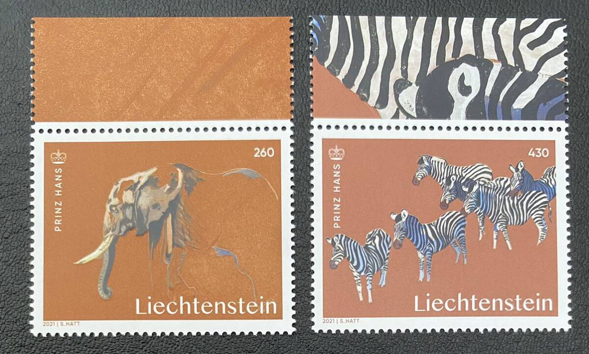 - リヒテンシュタイン ハンス王子画 シマウマ ナウマンゾウ 絵画 美術 2種完 未使用 NH