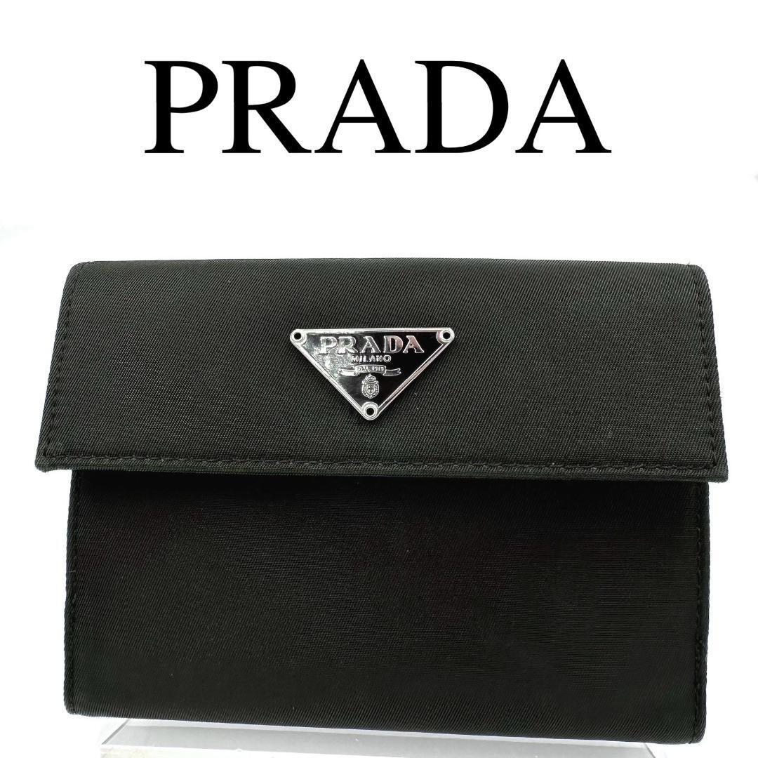 - PRADA プラダ 折り財布 ロゴプレート Wホック カーキ系 ナイロン