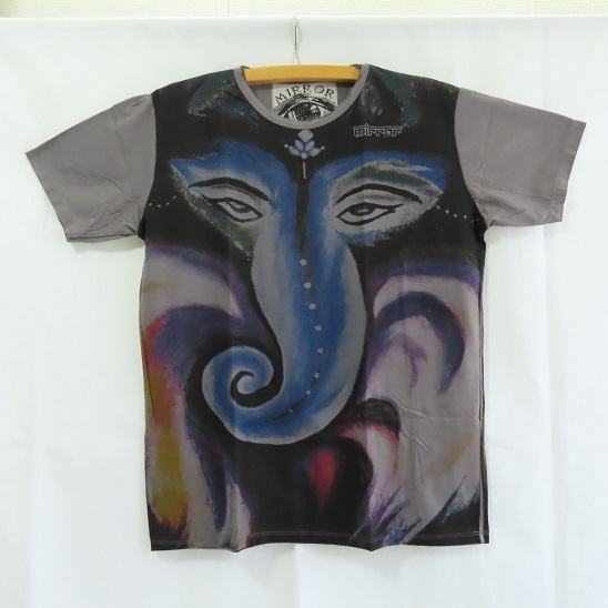 > 〓 新品 〓 ガネーシャ Tシャツ 〓 ヒンドゥー 神様 ゾウ エスニック アジアン フェス グレー 男女兼用 おしゃれ 〓E175