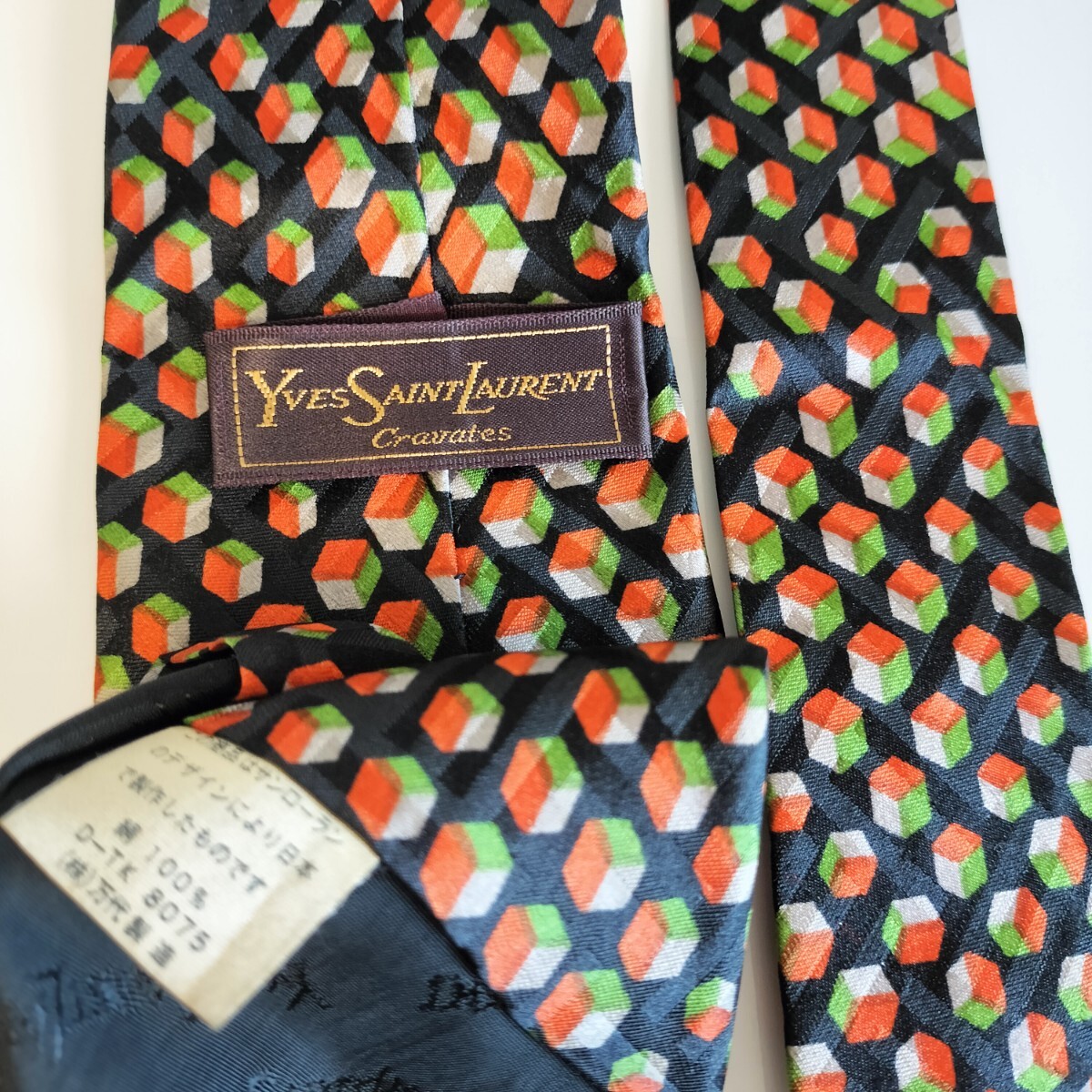 - イヴサンローラン(YVES SAINT LAURENT)オレンジ緑立体スクエアネクタイ