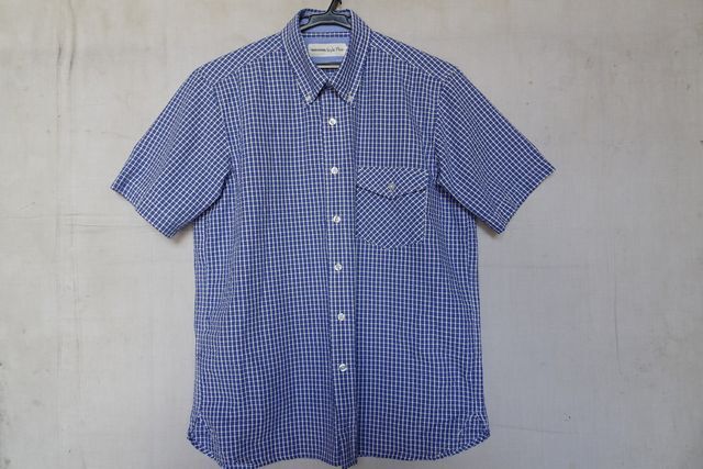 - TAKASHIMAYA Style Plus/高島屋/半袖ボタンダウンシャツ/チェック柄/リップル加工生地/カジュアル/青/ブルー/Sサイズ(8/8R)