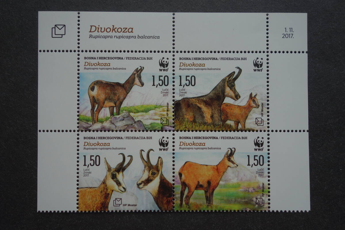 - 外国切手: ボスニア・ヘルツェゴビナ(クロアチア人地区)切手 「シャモア」田型連刷 未使用