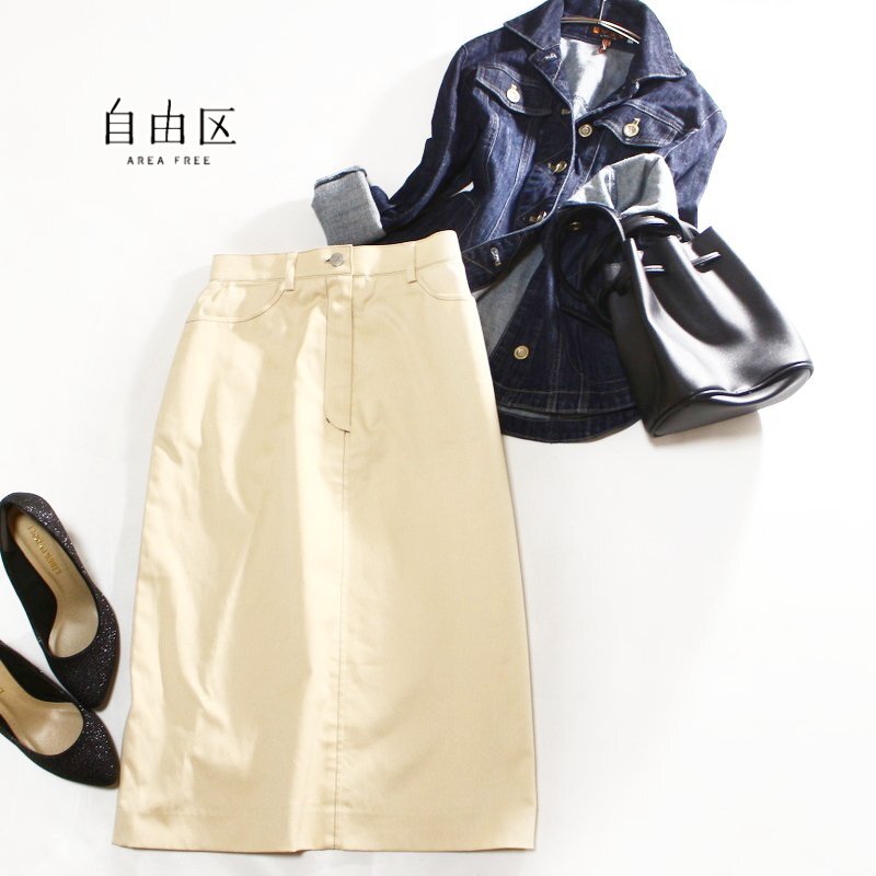 > 美品 ジユウク 自由区 株) オンワード樫山 春 夏 ミモレ丈 タイトスカート ミディスカート 9号 38 ベージュ ミセス お洒落 綺麗め