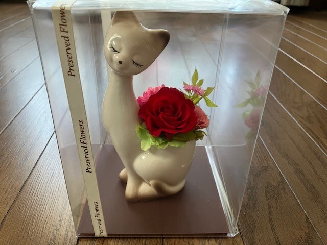 - プリザーブドフラワー アレンジメント 猫 薔薇 バラ ローズ レッド ケースサイズ:14㎝×14㎝×19.3㎝ 花 未開封 送料無料 底値