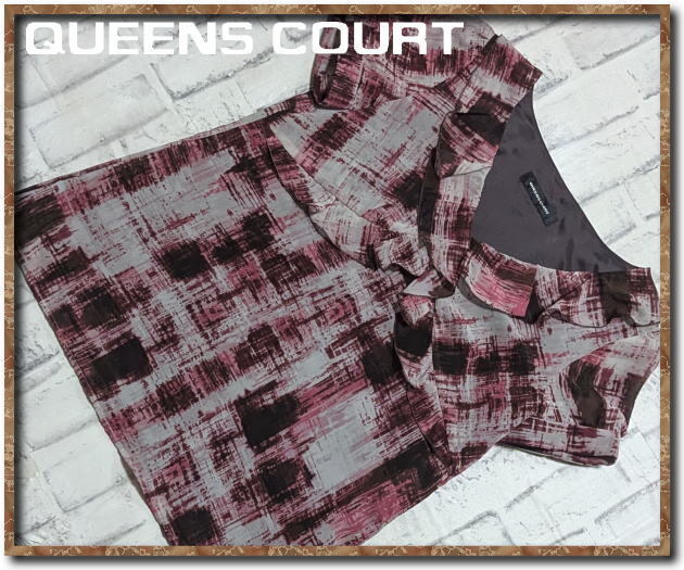 - ☆QUEENS COURT クイーンズコート 裏地付きプリントシフォンブラウス☆