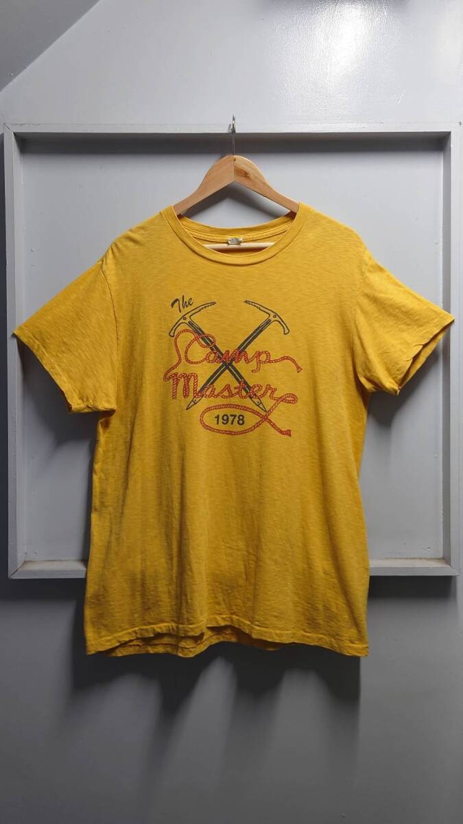 - 1978’s Velva Sheen USA製 シングルステッチ “The Camp Master” スラブTシャツ マスタード L 半袖