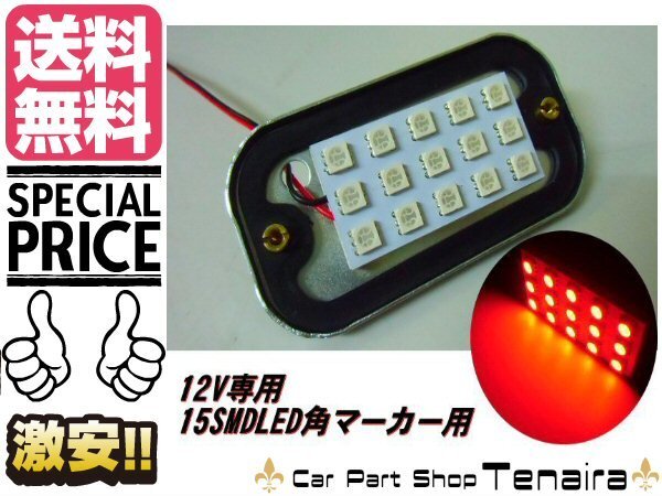 > 12V LED 15SMD 基盤 赤 角マーカー 電球 交換用 レッド LED ライト トラック ダンプ 庫内灯 サイドマーカー 作業灯 メール便送料無料/3