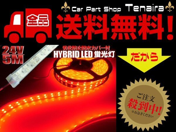 > 劣化防止 防水カバー付 2列 LEDテープライト LED電球 24V 5M 赤 レッド アンダー サイド マーカー 送料無料/4